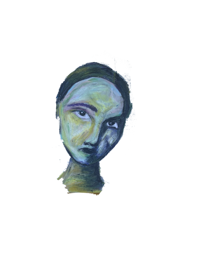 Un autoportrait fait premièrement au stylo puis a la craie grasse avec des jeux de lumière.